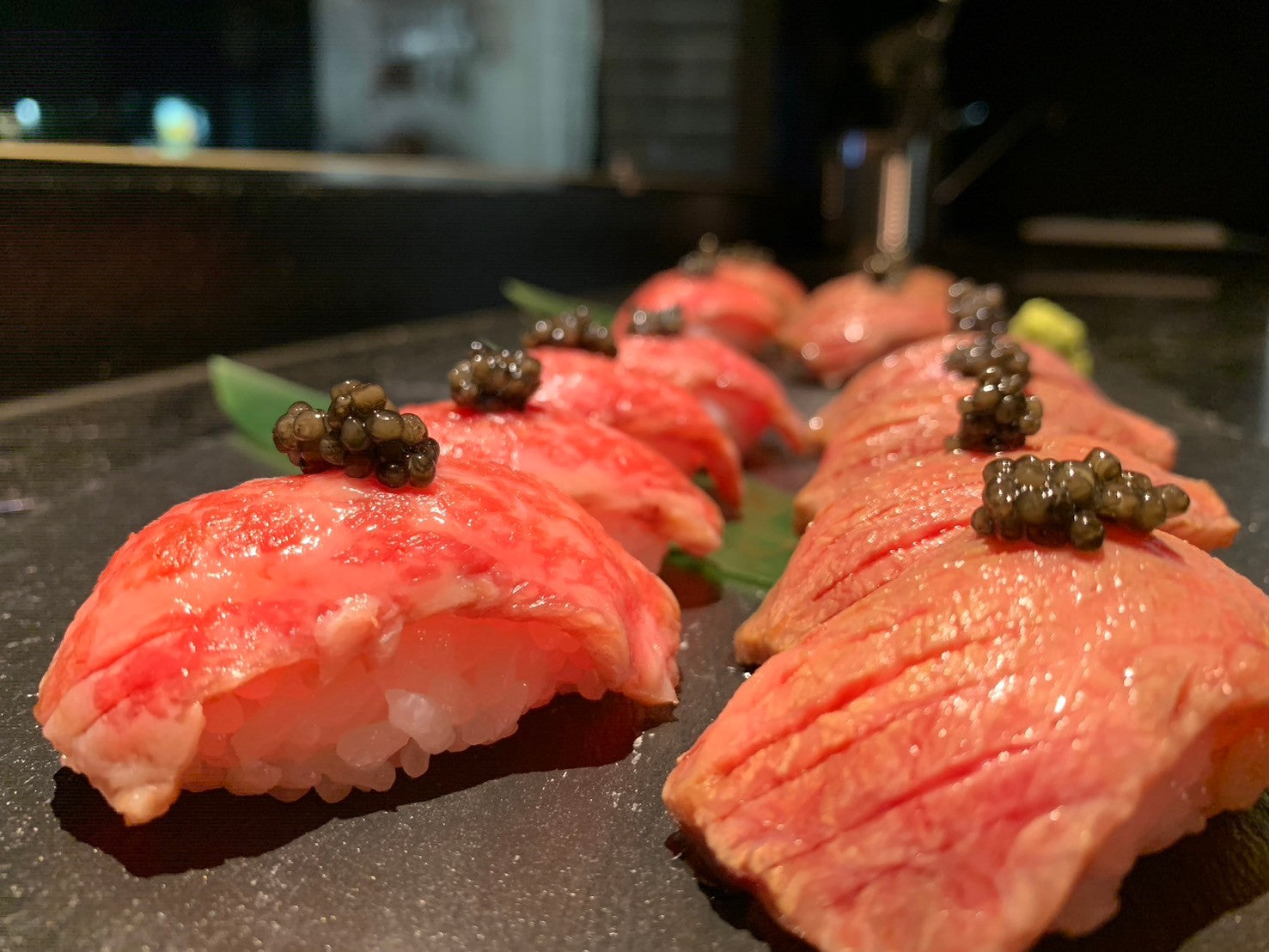 肉寿司と極上薪焼きステーキを堪能♪【極コース】全8品